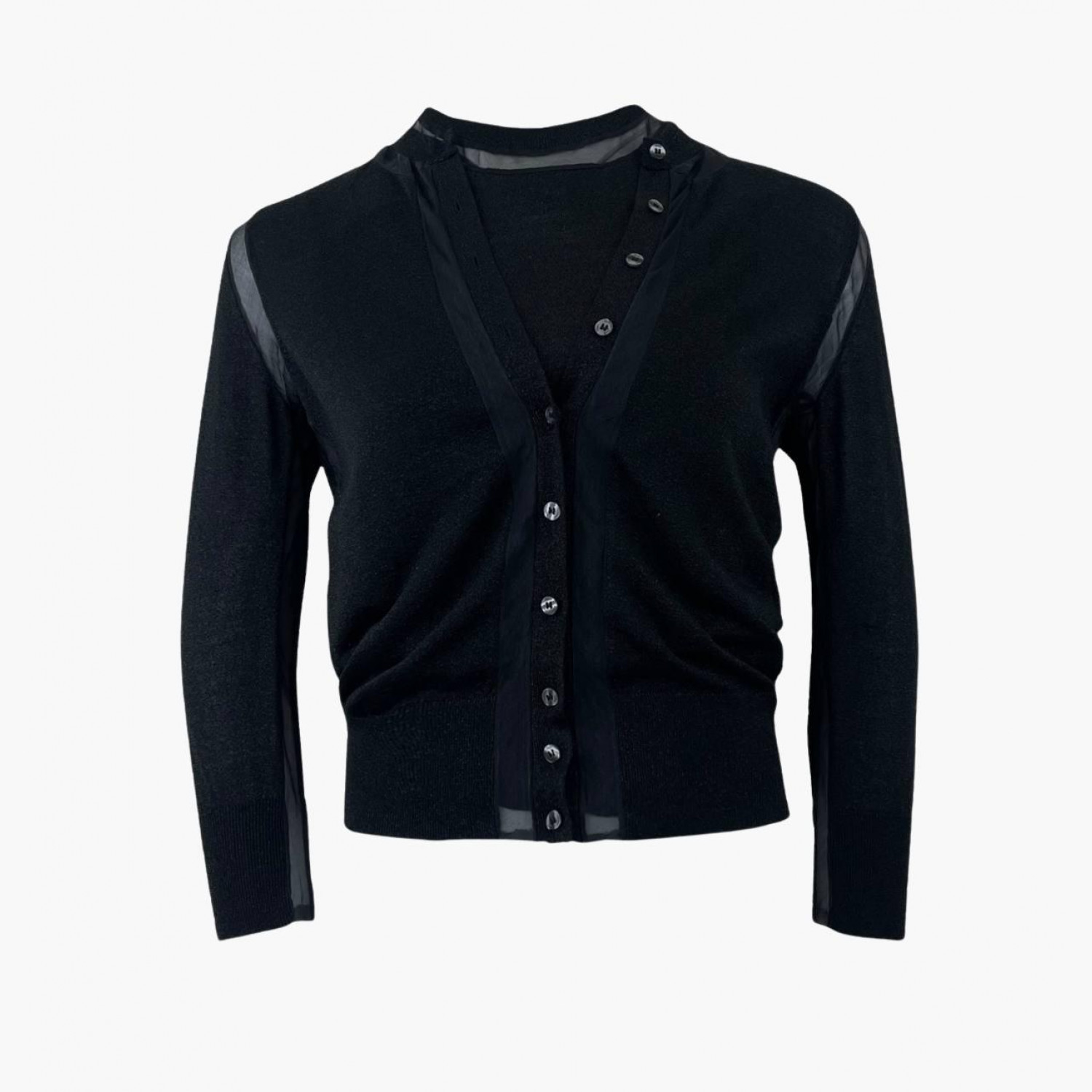 Шовковий чорний комплект із кардигана та майки. Склад: 58% шовк, 42% поліестер. У хорошому стані, є незначні сліди вжитку.