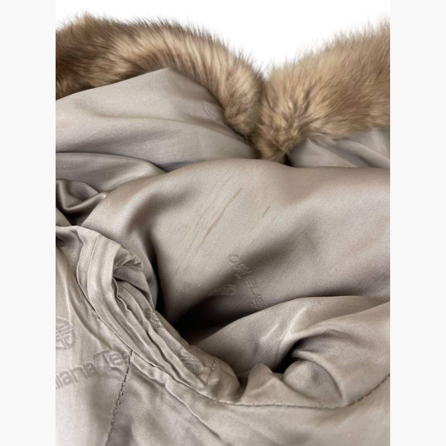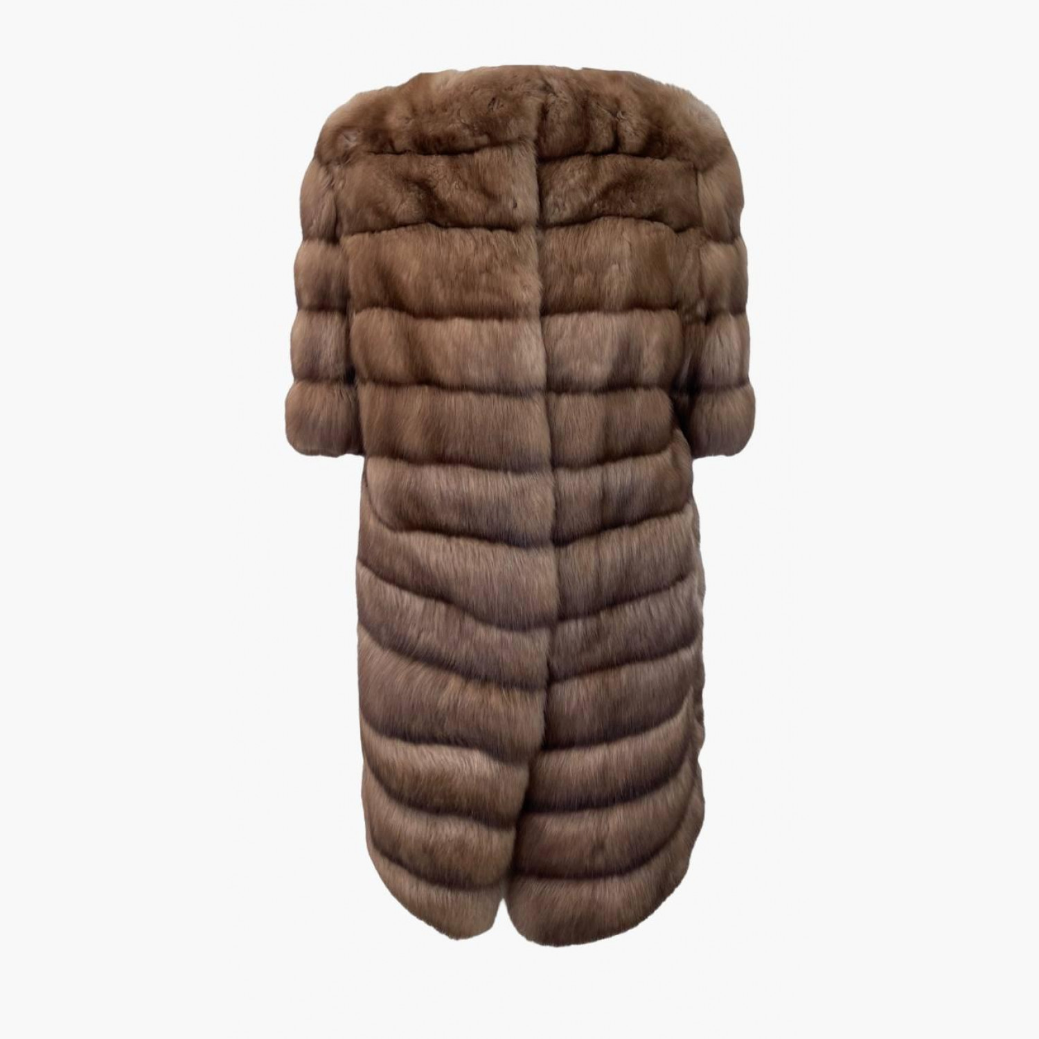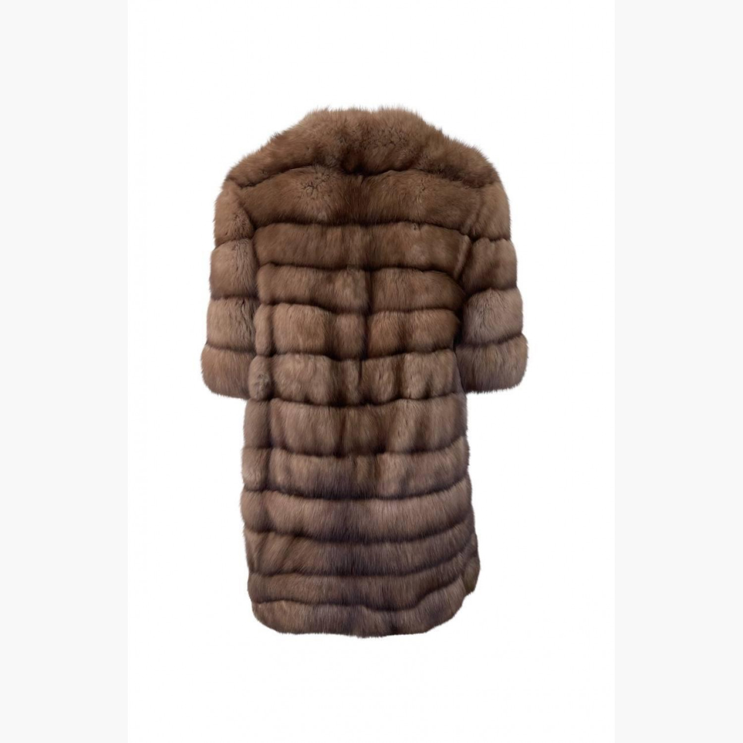 Коричнева шуба з соболя з короткими рукавами. Склад: основний матеріал — соболиний хутро; підкладка — 91% ацетат, 9% поліамід. У хорошому стані, на підкладці є плями.