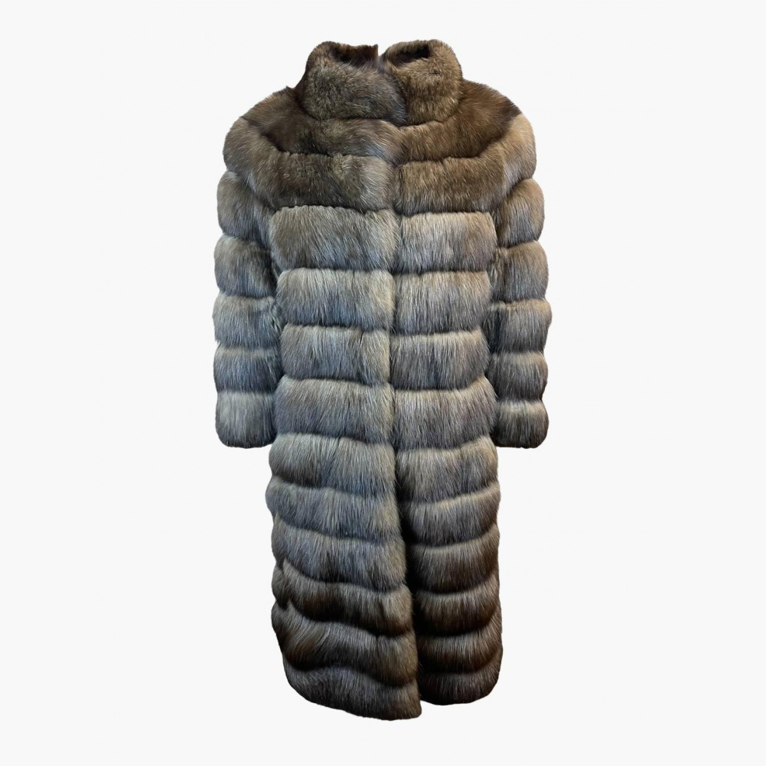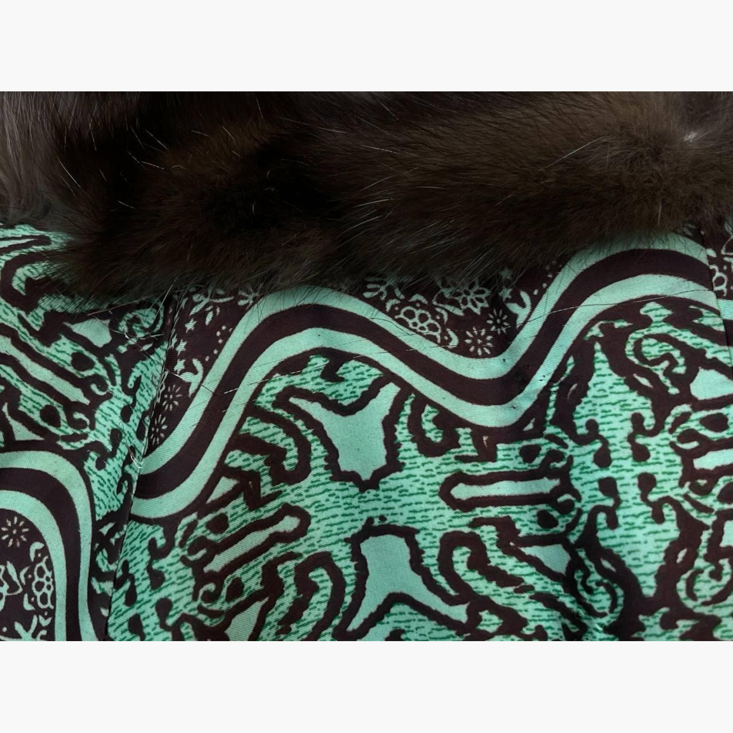 Коричневая шуба из соболя. В отличном состоянии: подкладка заменена, имеются незначительные следы носки в виде затяжек.
