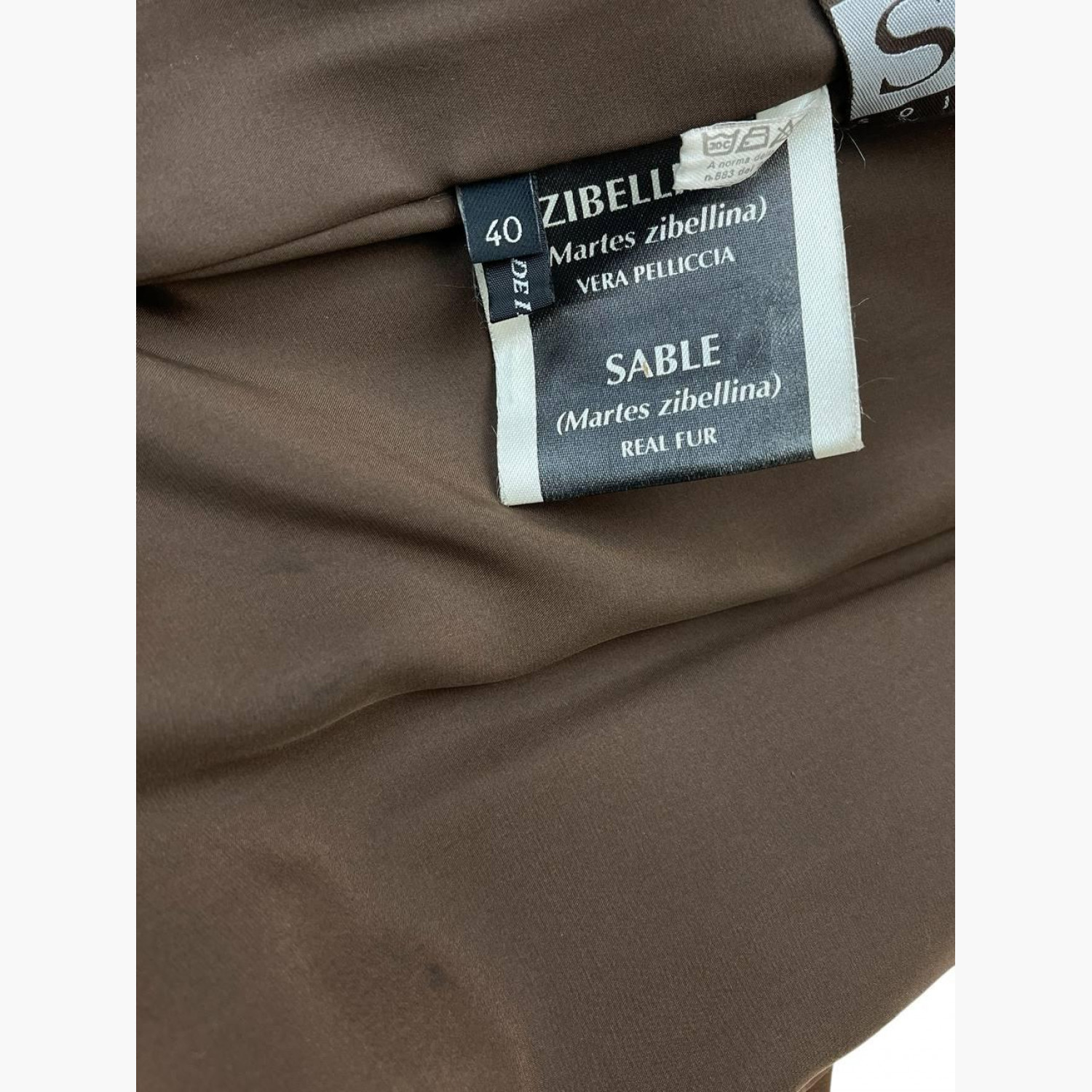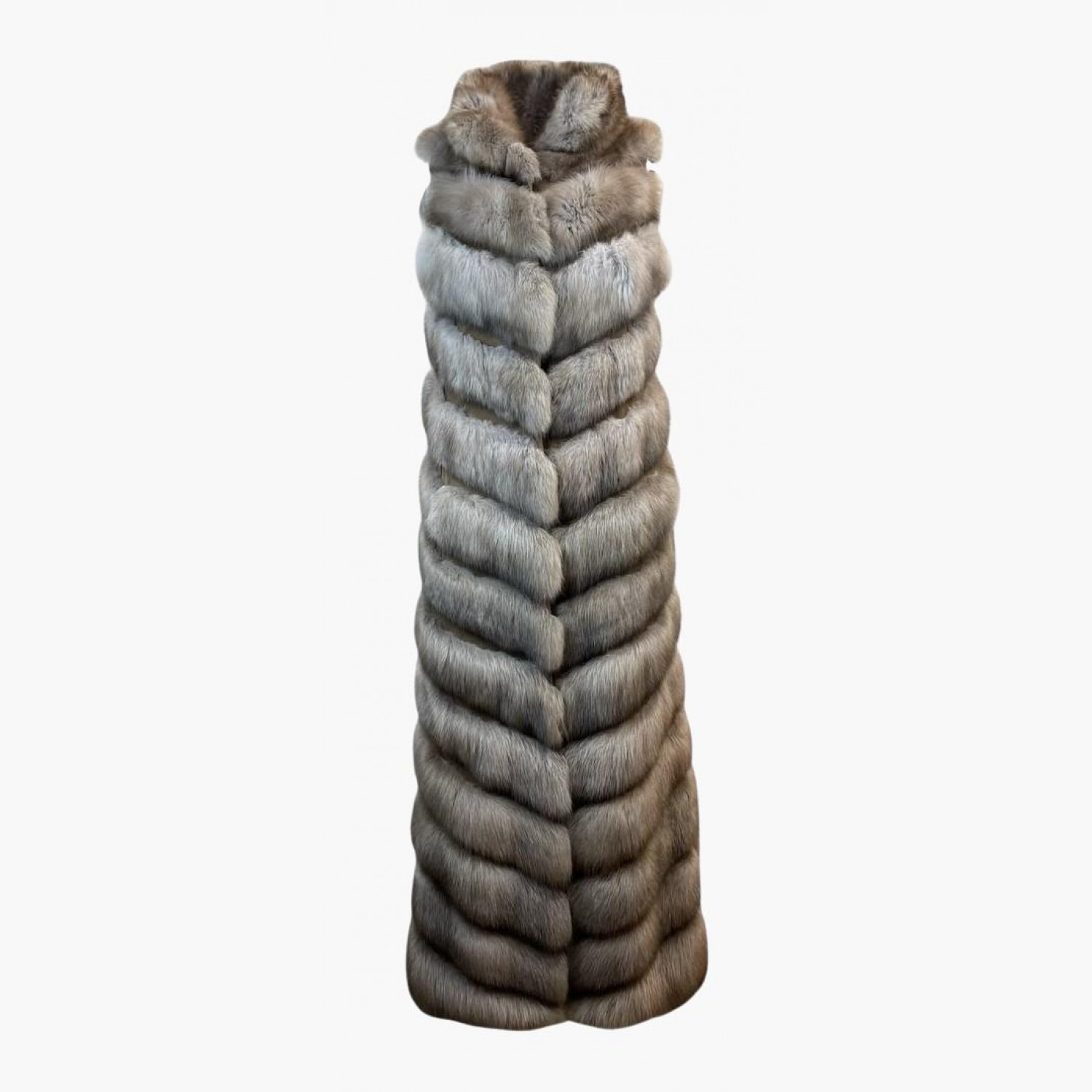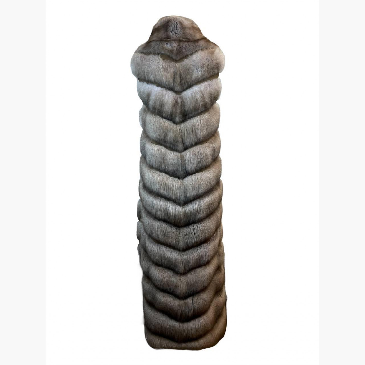 Довга коричнева жилетка в підлогу, виконана з хутра соболя. У відмінному стані, проте є плями на підкладці.