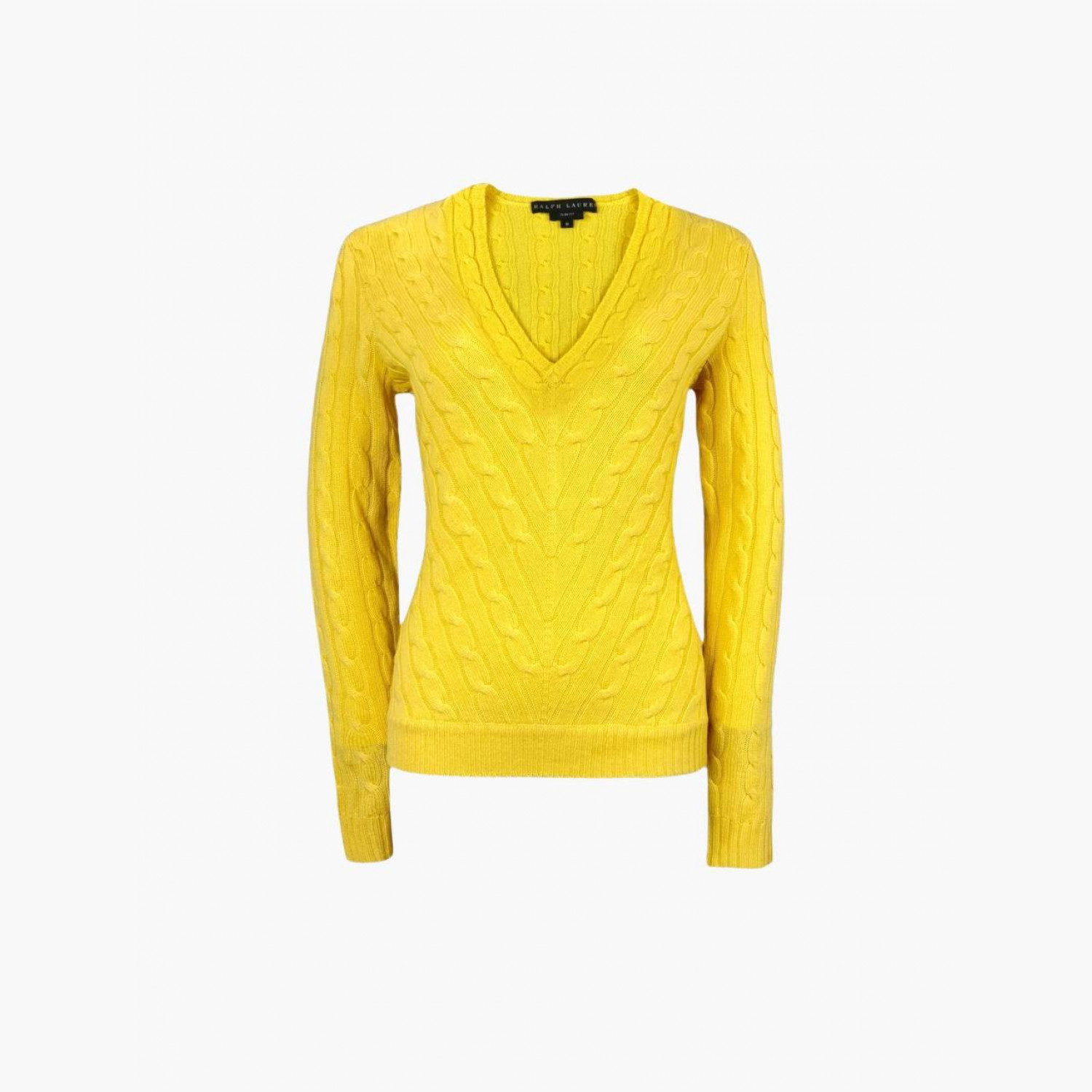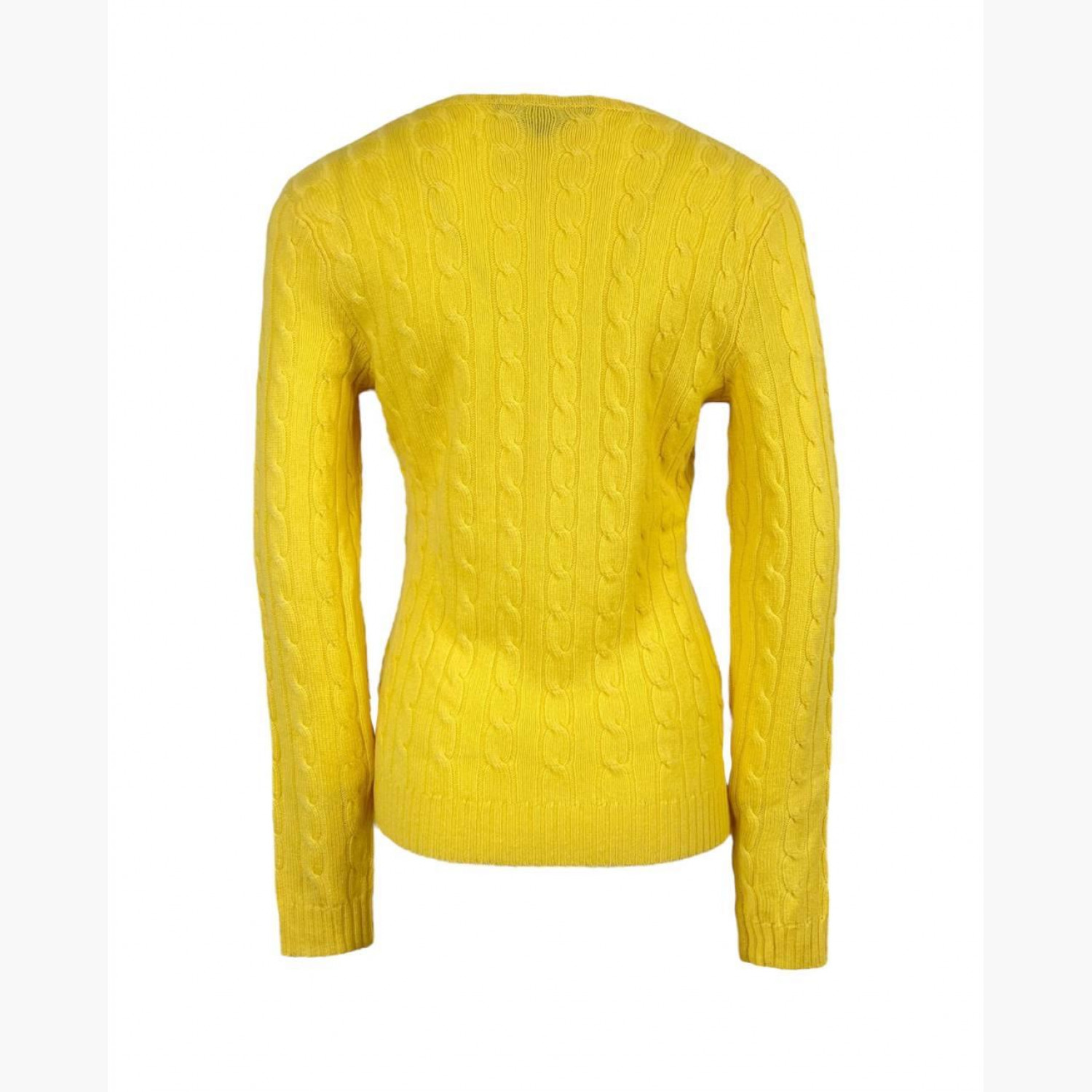 Жовтий светр з в’язкою «косичка» та трикутним вирізом горловини. У відмінному стані, без слідів вжитку.