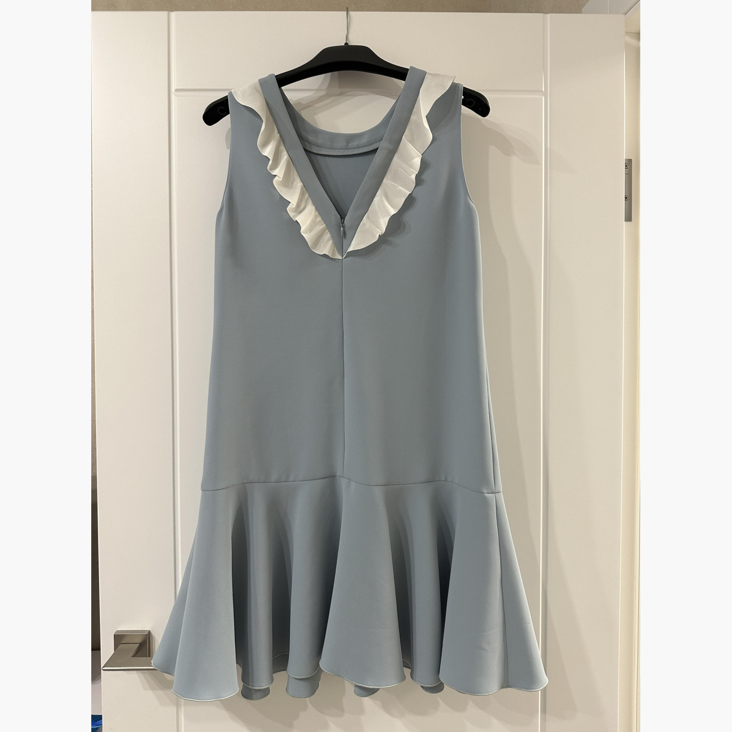 Блакитна мінісукня у стані нової. Довжина — 90 см. ПОГ — 46 см, ПОТ — 44 см, ПОБ — 46 см.