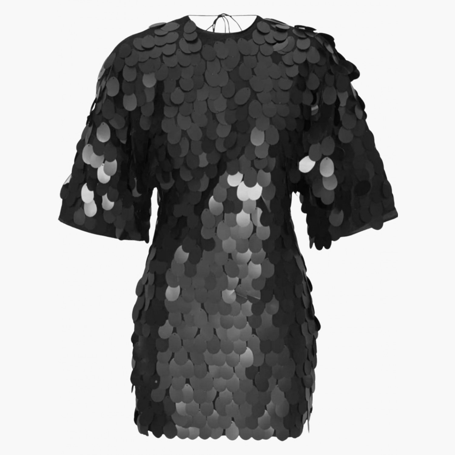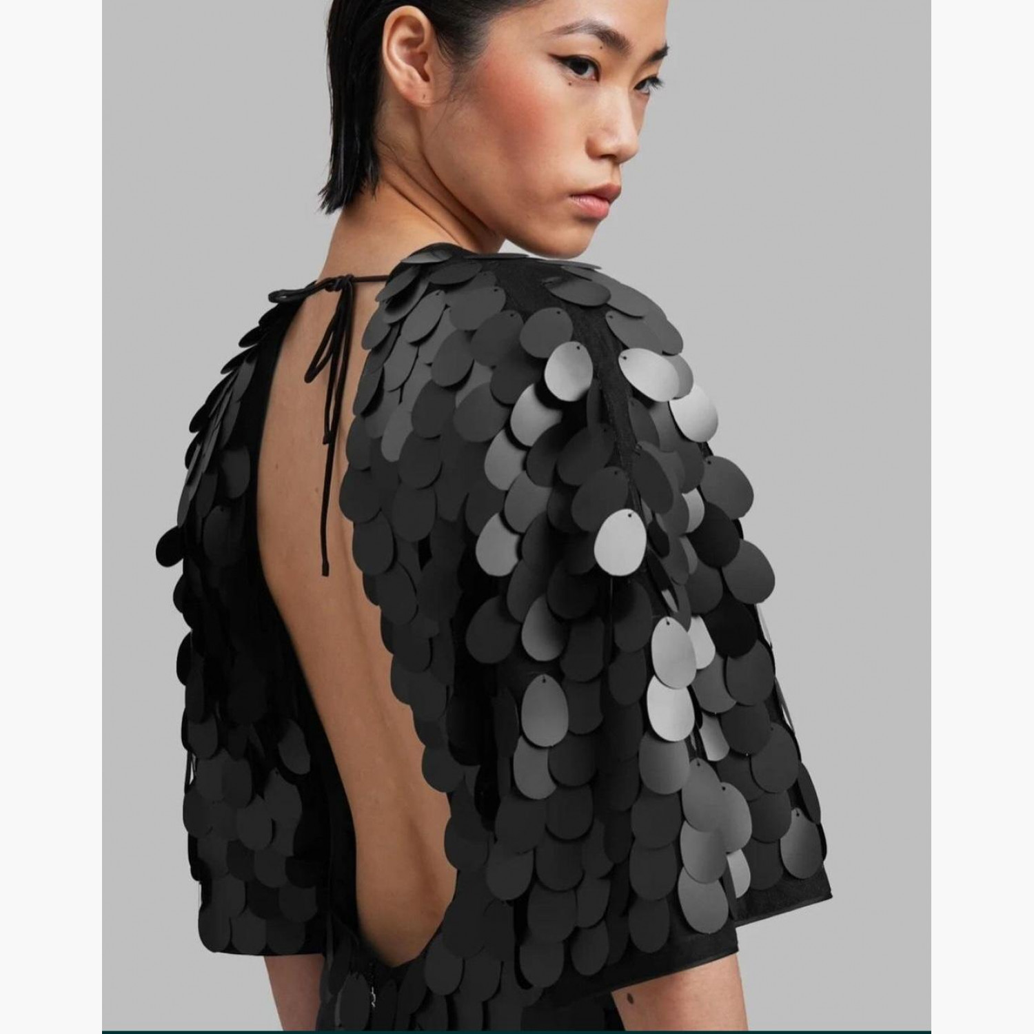 Чорна коктейльна сукня з об'ємними плечима і відкритою спиною. Розмір S-M.