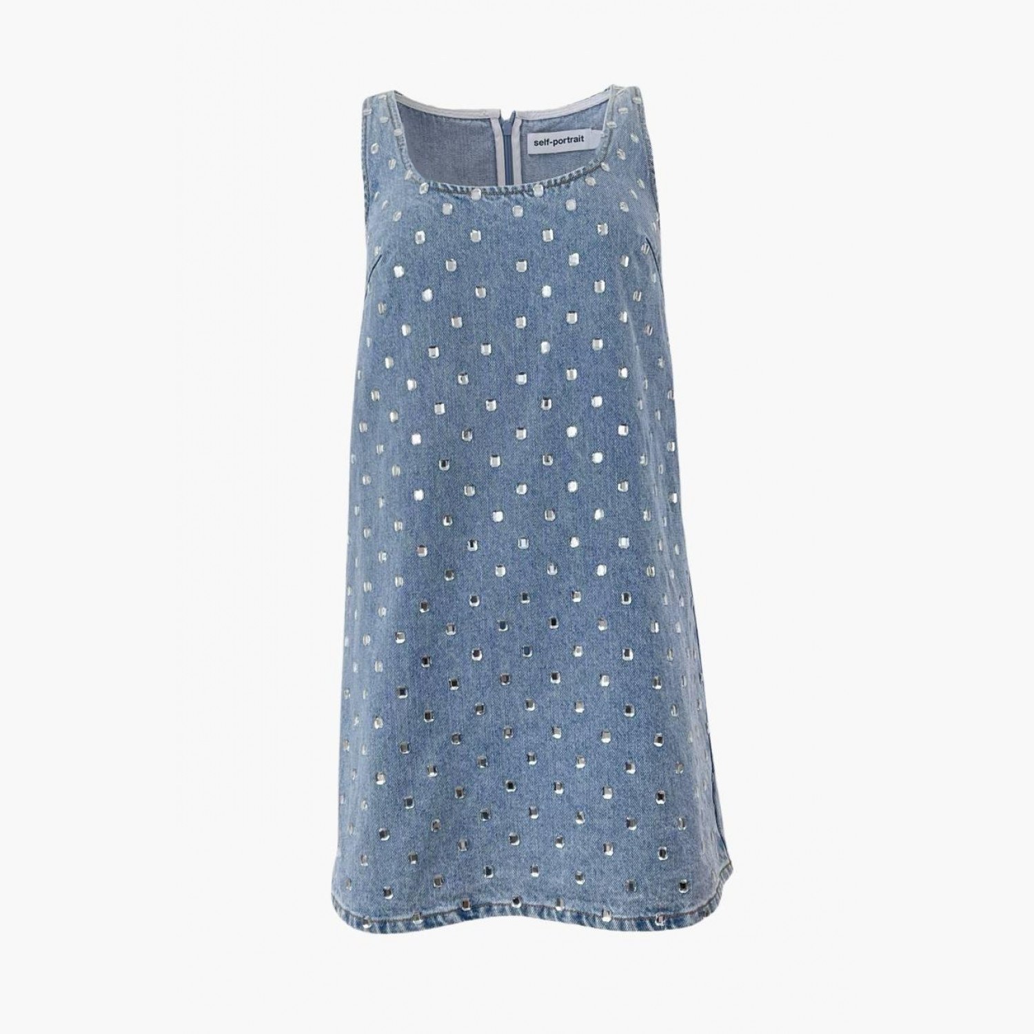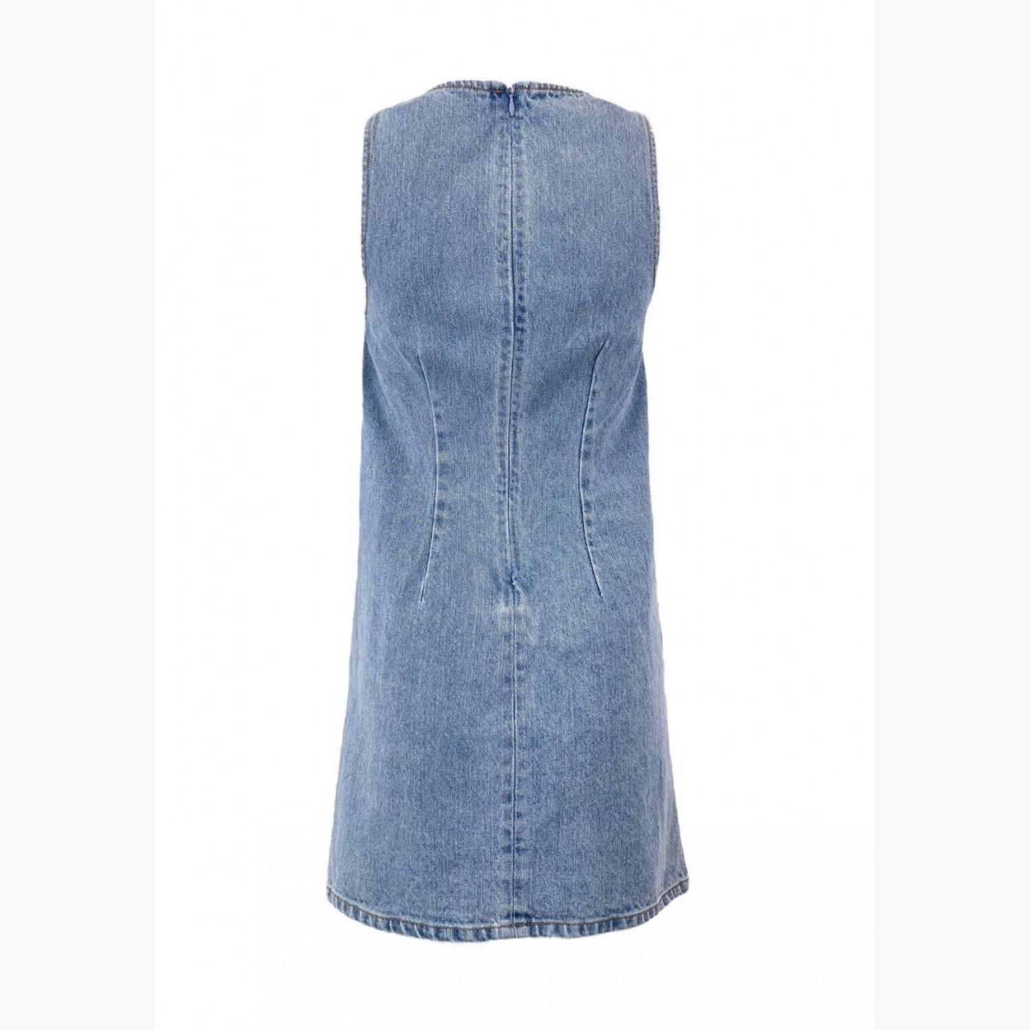 Коротка джинсова сукня, оздоблена камінням, без рукавів. У відмінному стані, є незначні сліди вжитку.