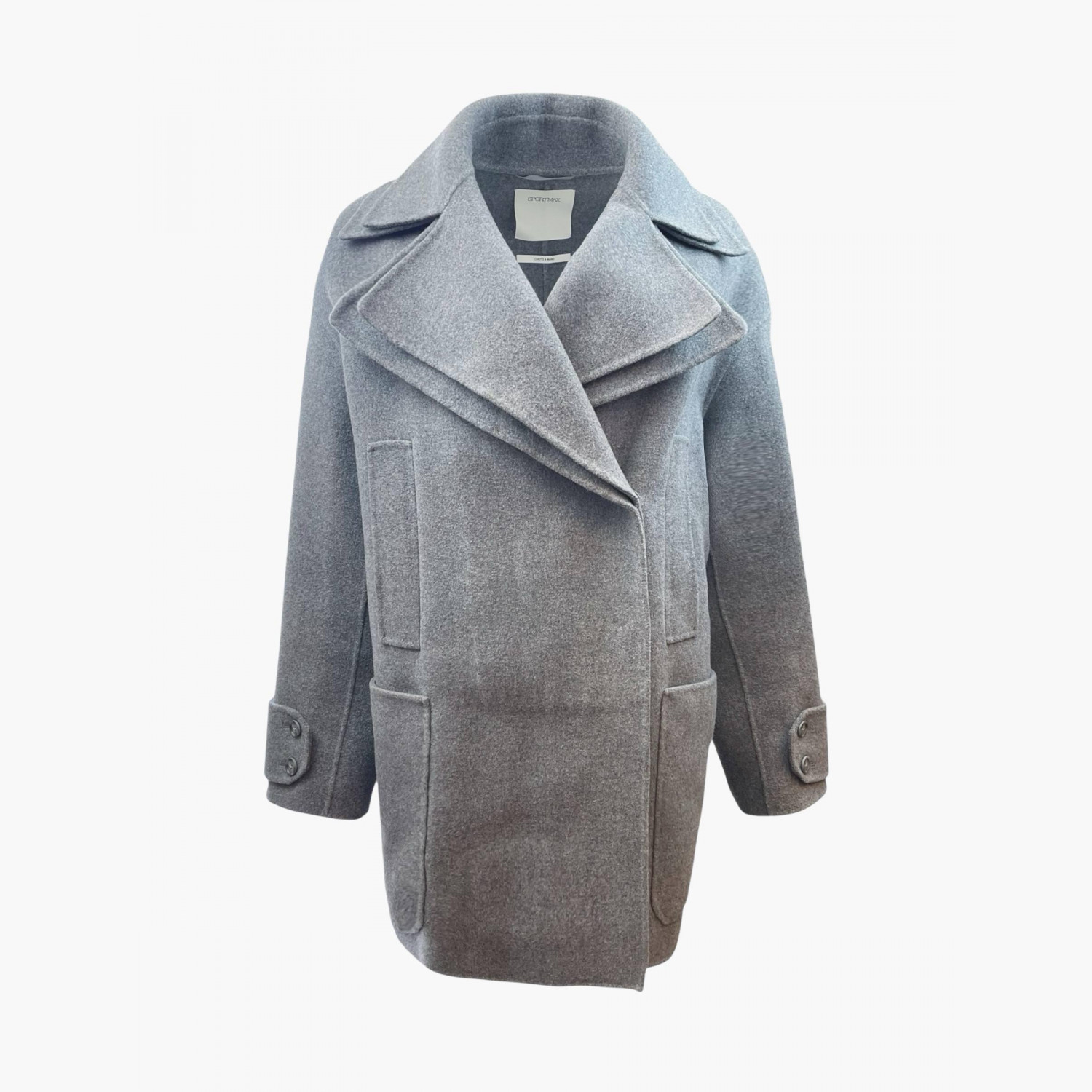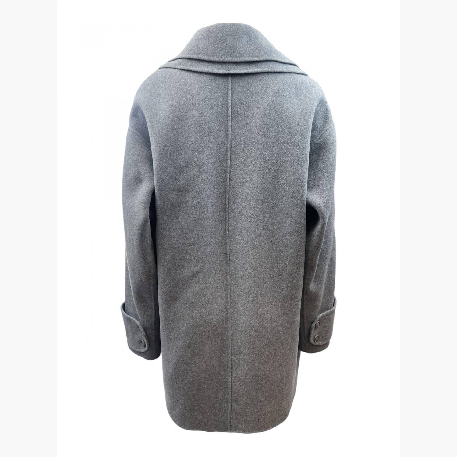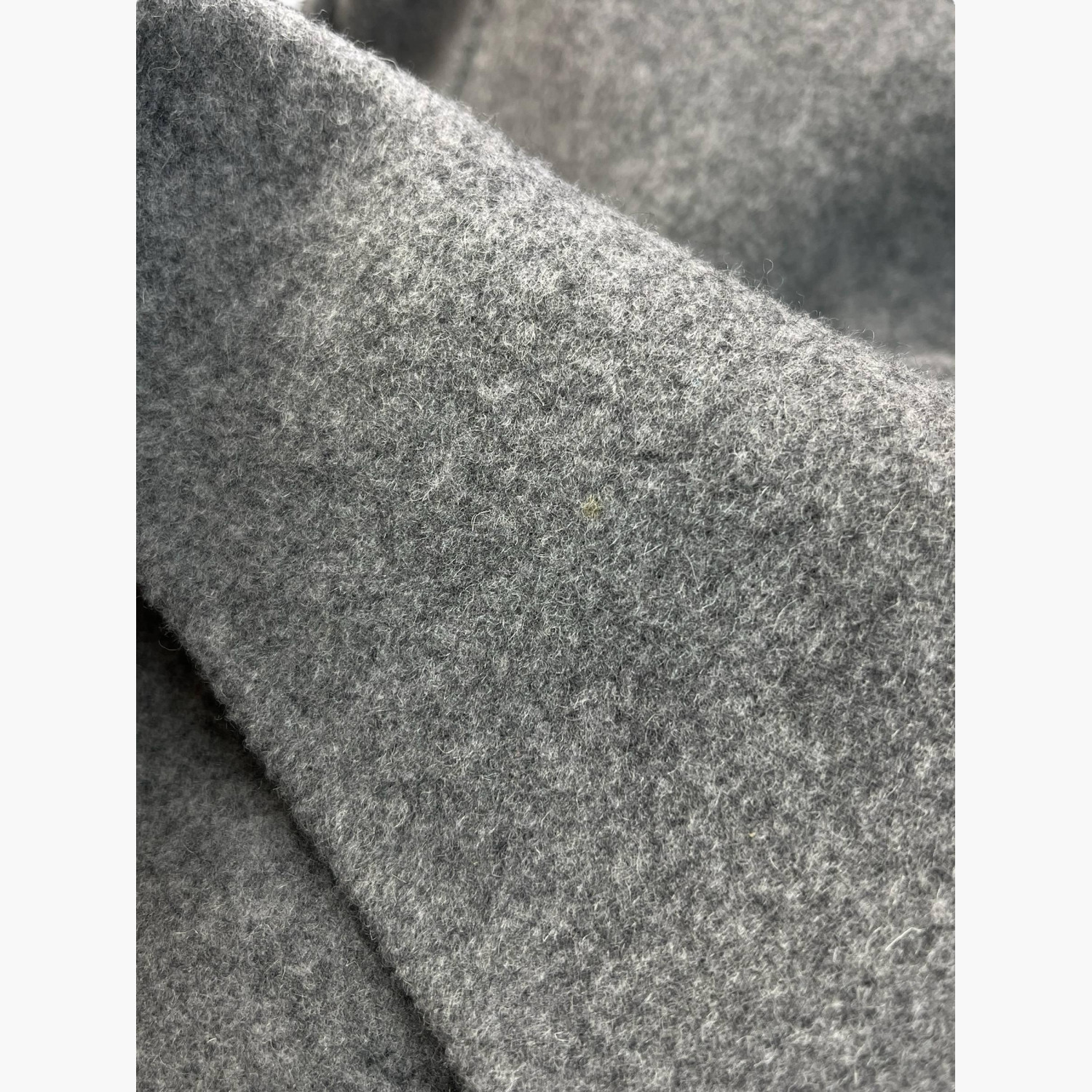 Сіре вовняне пальто.Склад: 70% вовна, 30% кашемір.У відмінному стані, є невелика пляма на лацкані.