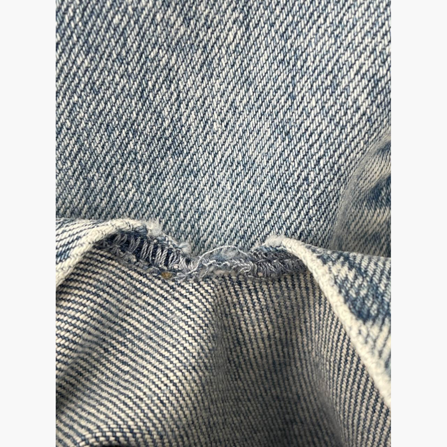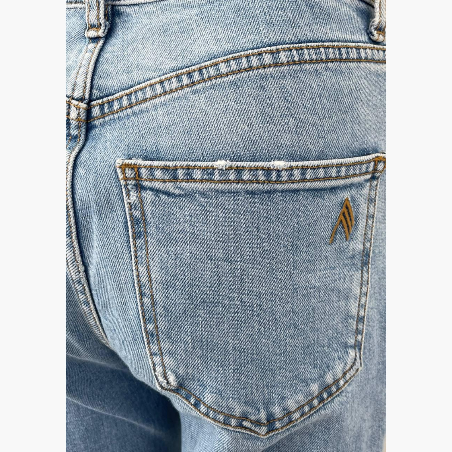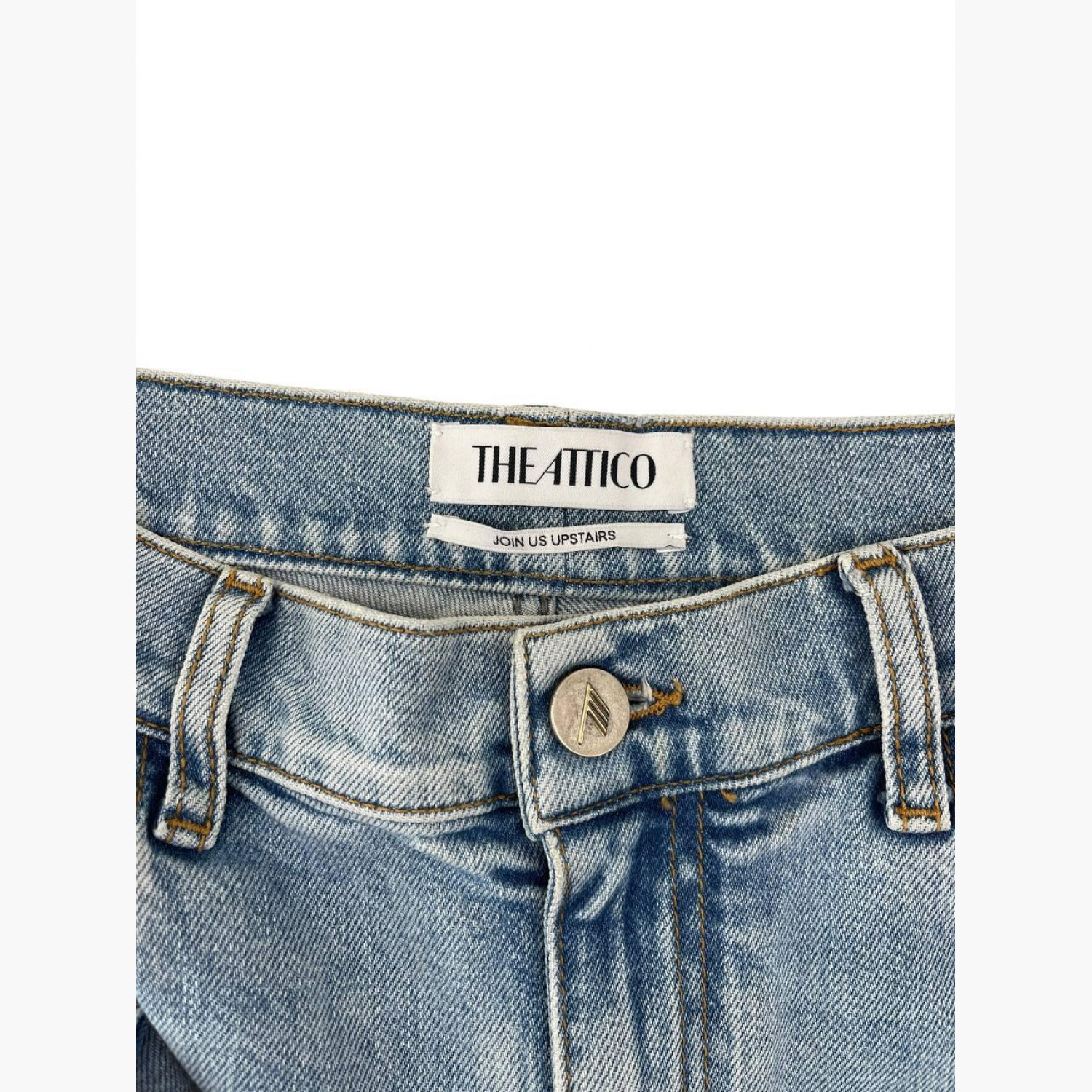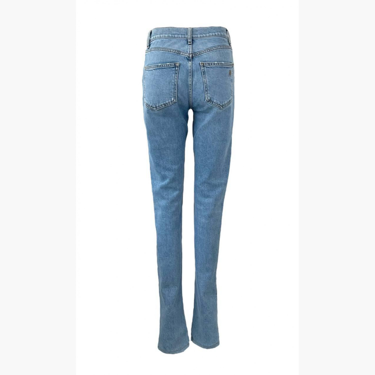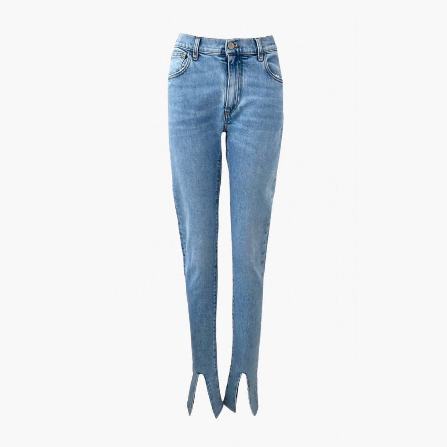 Блакитні джинси завужені з розрізами внизу штанин. Склад: основний матеріал — 98% бавовна, 2% еластан; підкладка — 65% поліестер, 35% бавовна. У відмінному стані, є незначні сліди вжитку.