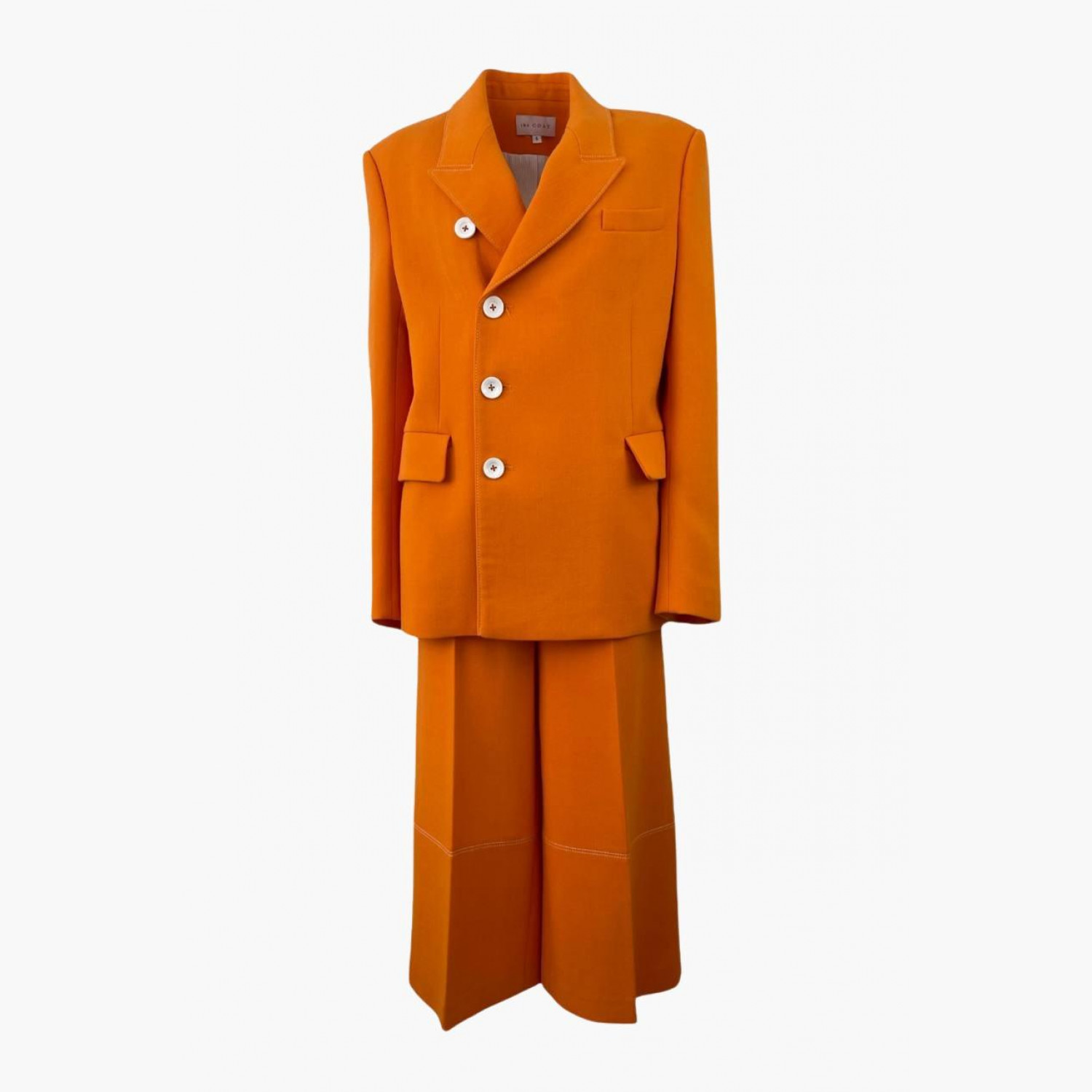 Помаранчевий костюм. Склад: 70% шерсть, 30% віскоза. Відмінний стан, є незначні сліди вжитку.