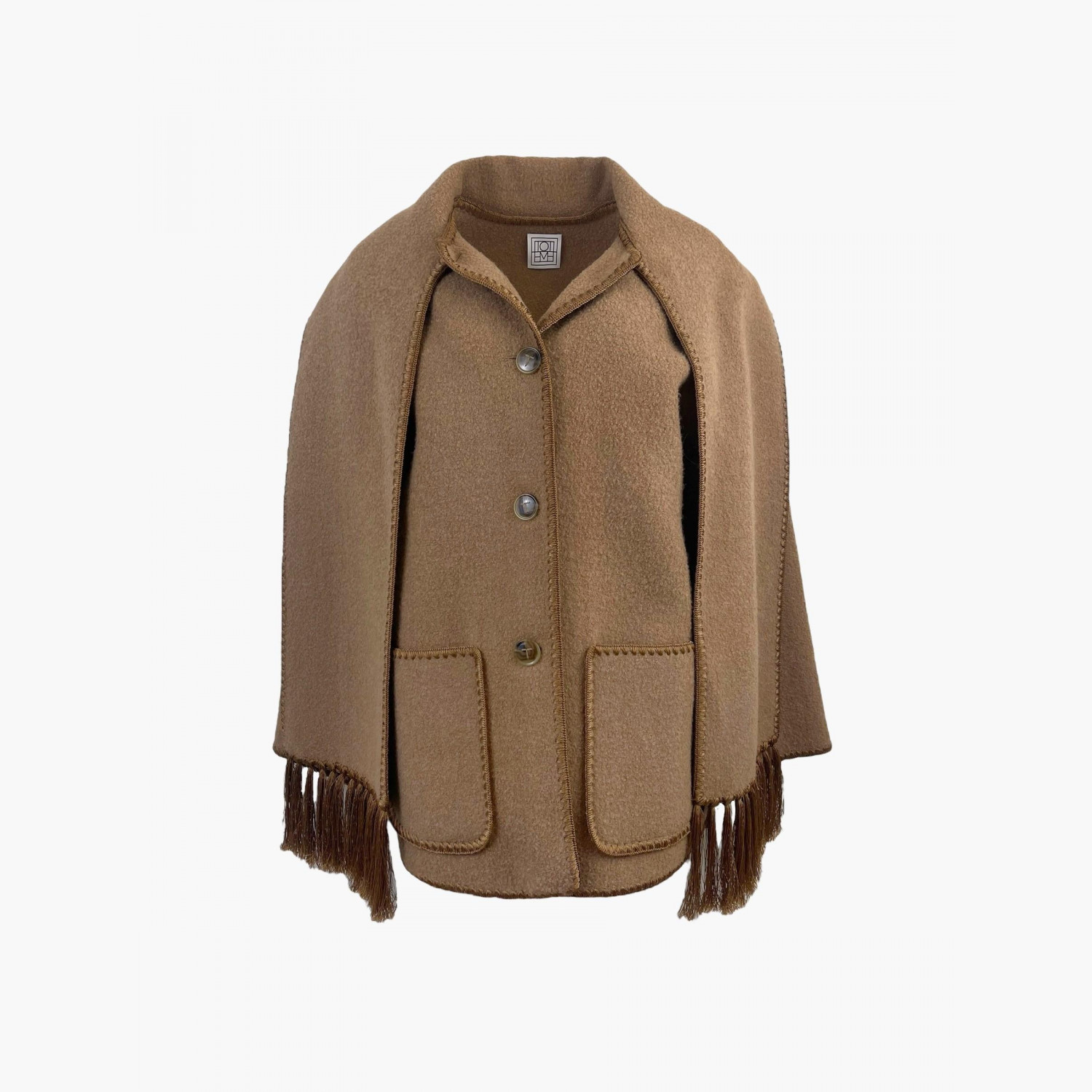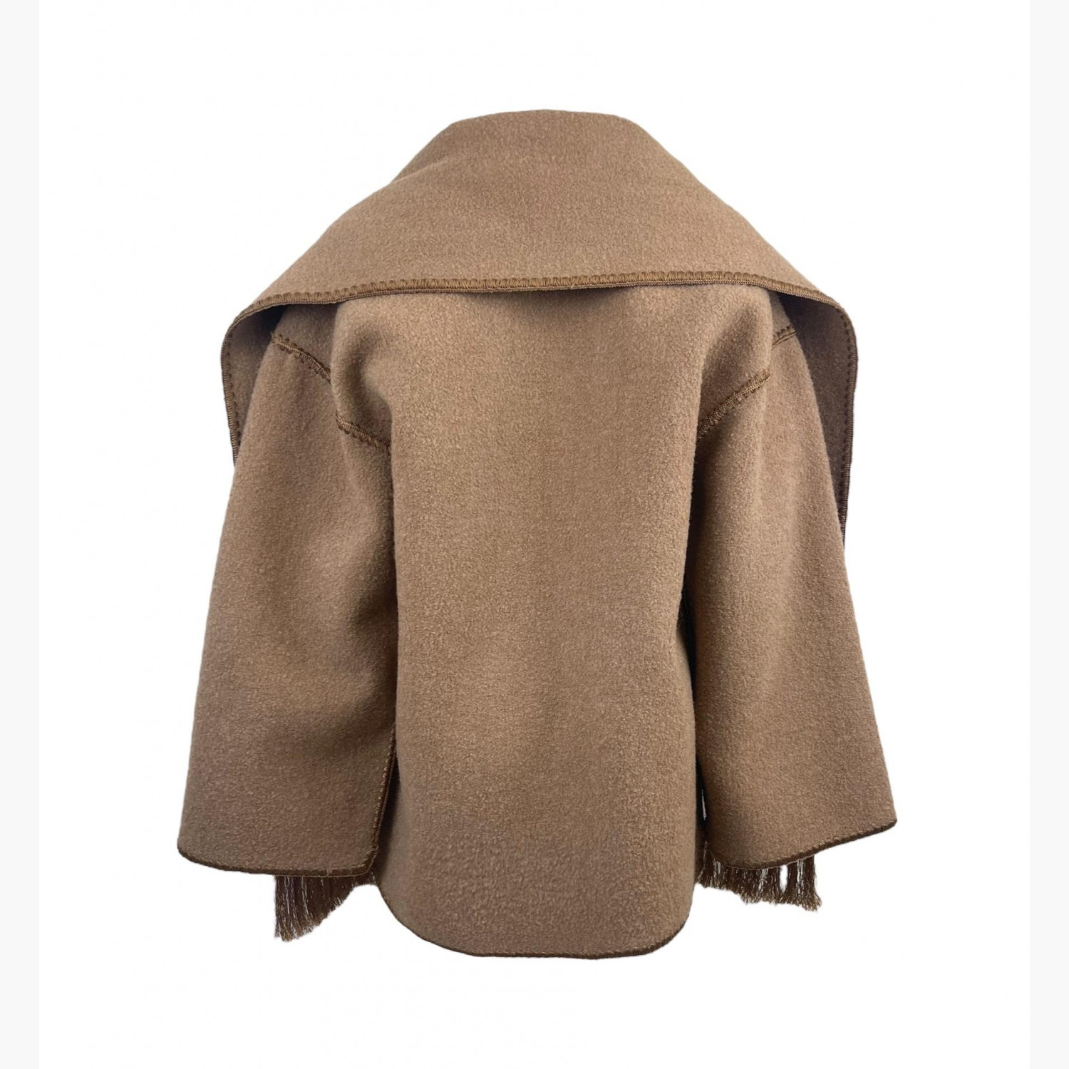 Коричневе коротке пальто зі знімним шарфом та вишивкою по краях. Склад: 88% вовна, 12% поліамід. У відмінному стані, без слідів вжитку.
