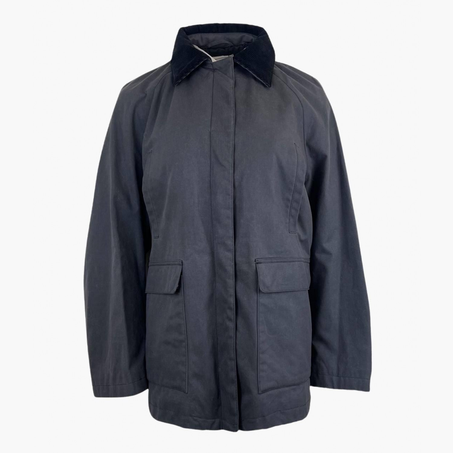 Графітова куртка з чорним вельветовим коміром і вельветовими вставками на рукавах. У відмінному стані, є незначні сліди вжитку.