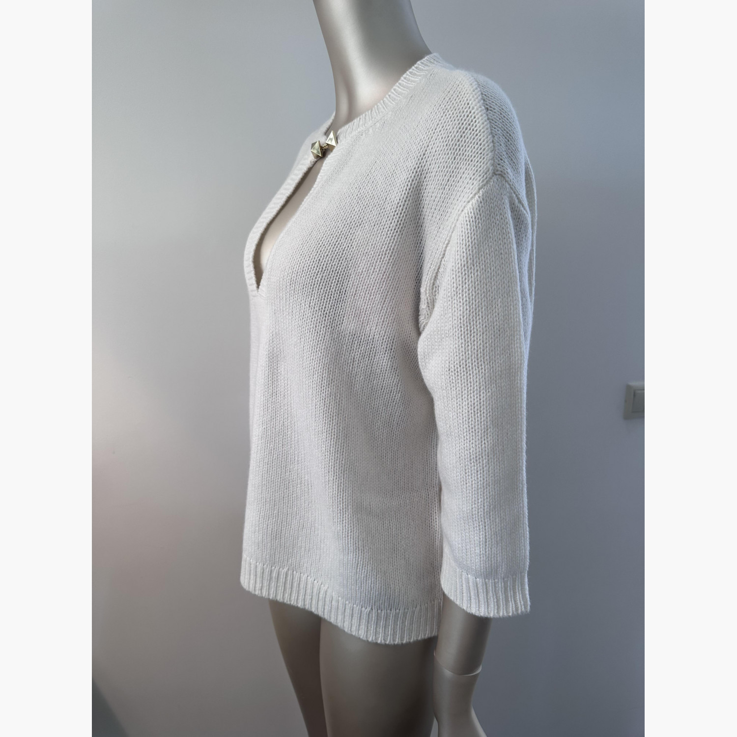 Білий светр, 100% кашемір, розмір XS. Довжина по спині 57 см; Ширина 55 см; Довжина рукава 35 см. Куплений в Італії