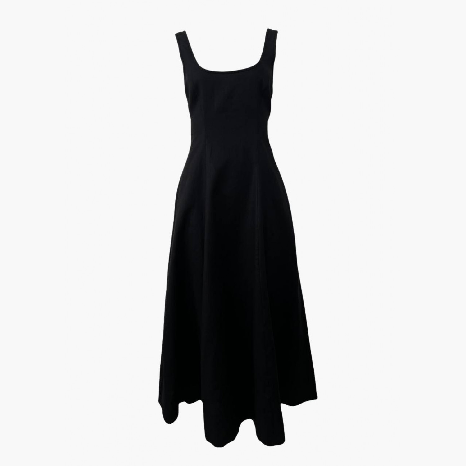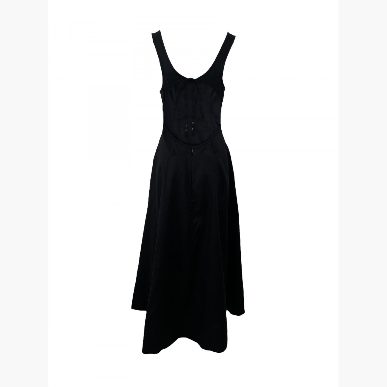 Чорний лляний сарафан з відкритою спиною на зав’язках. Склад: основний матеріал — 100% льон; підкладка — 100% бавовна. У відмінному стані, є сліди вжитку.